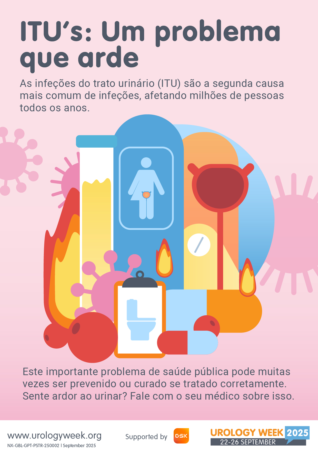 No âmbito da Urology Week, iniciativa promovida pela Associação Europeia de Urologia (EAU), de 22 a 26 de setembro, vamos realizar um WEBINAR GRATUITO sobre Infeções do Trato Urinário (ITU).