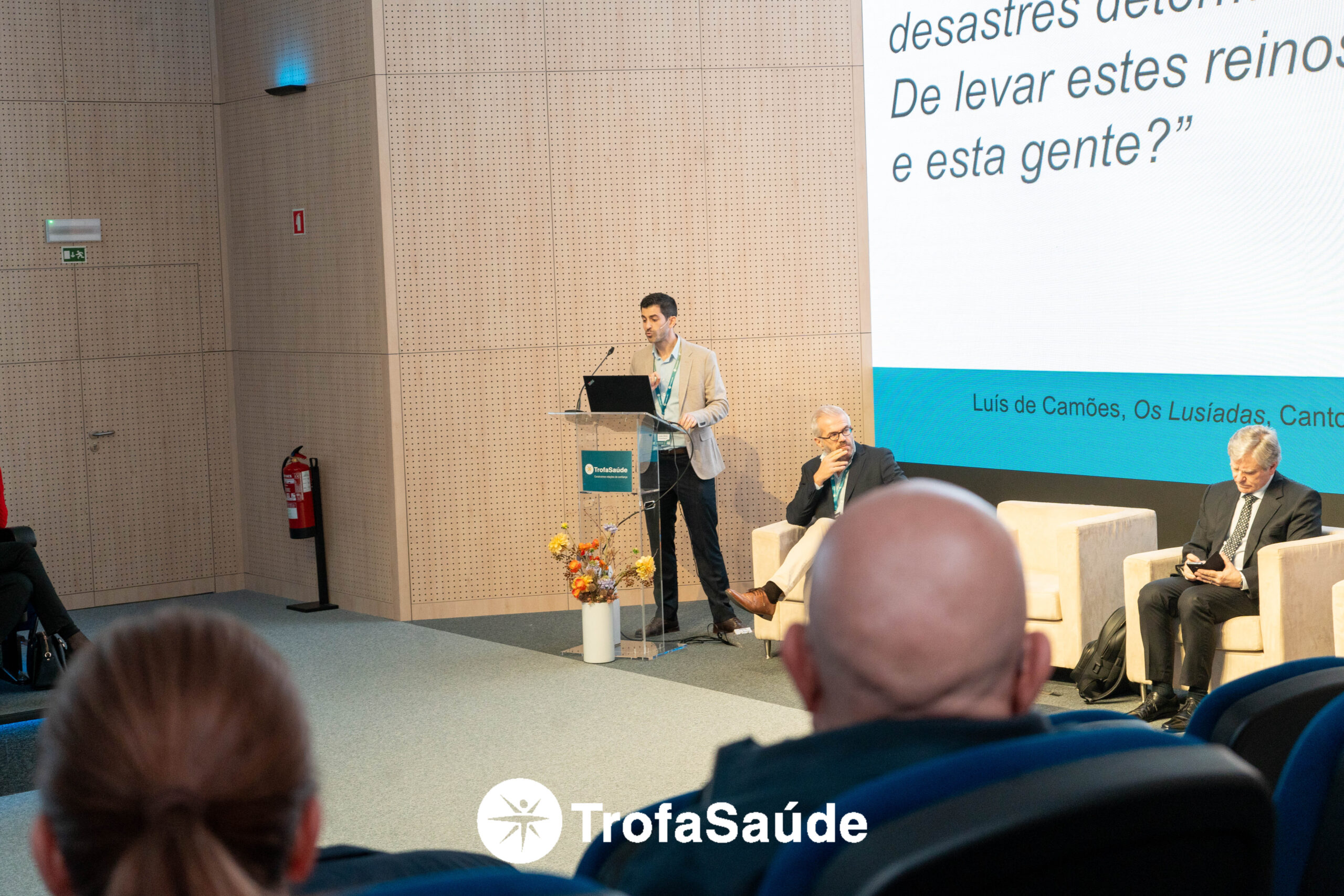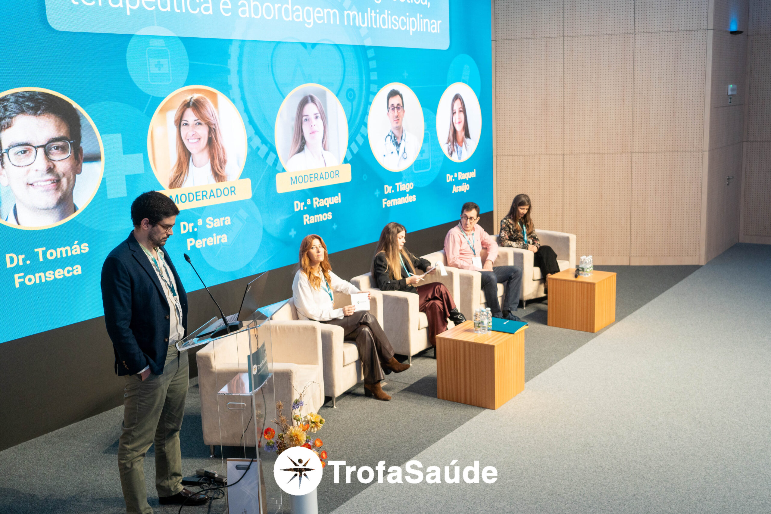 O Dr. Tomás Fonseca apresentou os princípios de diagnóstico e tratamento, seguindo-se o Dr. Tiago Fernandes, que abordou a abordagem ortogeriátrica e multidisciplinar.