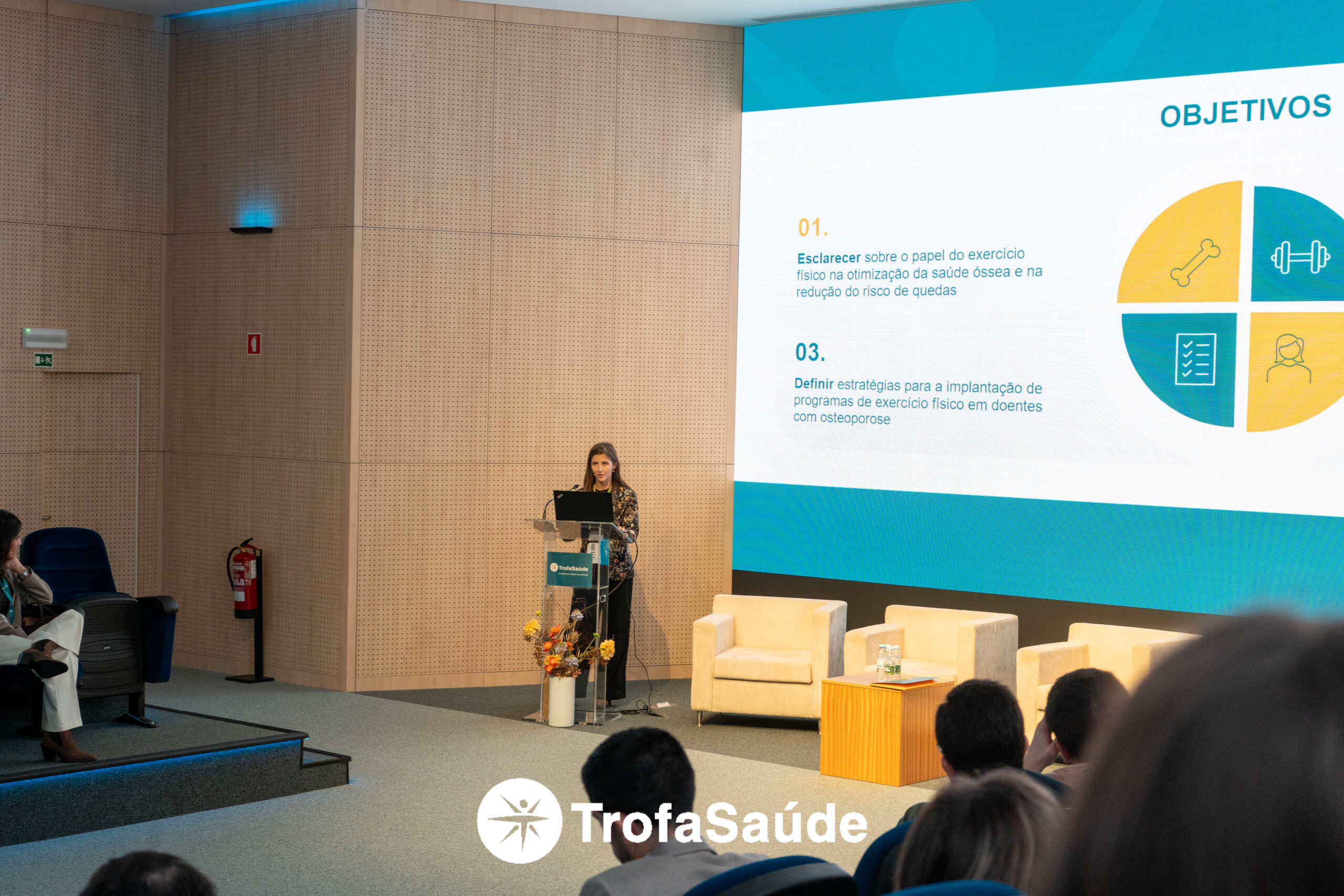 A sessão encerrou com a Dr.ª Raquel Araújo, com o tema “Exercício físico na osteoporose: da teoria à prática segura”, reforçando a importância do movimento como ferramenta terapêutica.