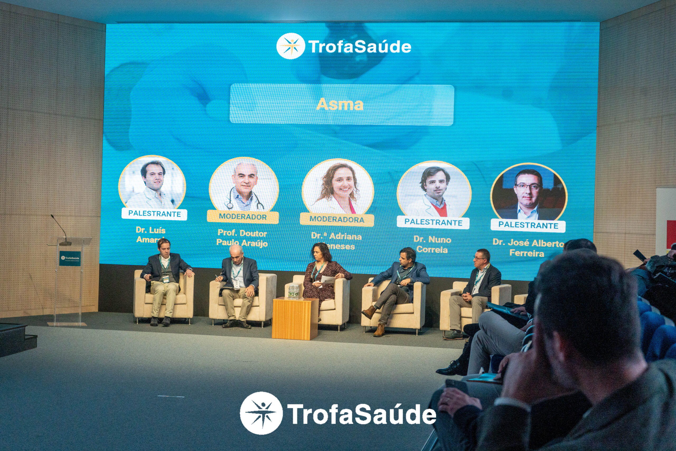 Seguiu-se a mesa sobre asma, moderada pelo Prof. Doutor Paulo Araújo e pela Dr.ª Adriana Meneses, com enfoque nos critérios de referenciação para cuidados especializados, no acompanhamento do doente asmático em contexto de internamento e nos desafios atuais do diagnóstico e da estratégia terapêutica, refletindo a complexidade e heterogeneidade clínica desta patologia.